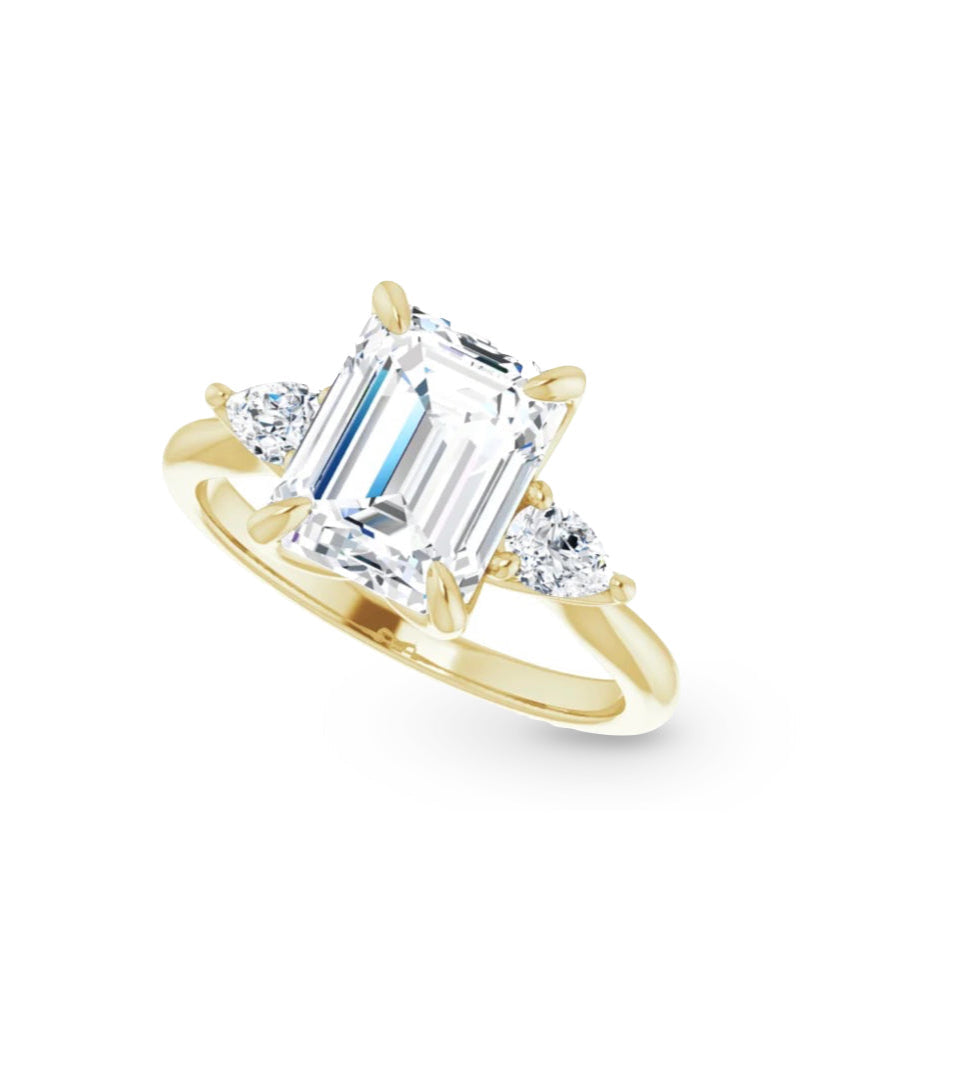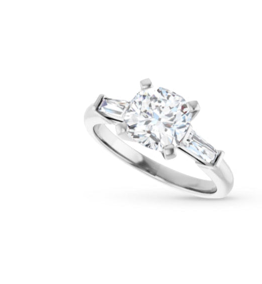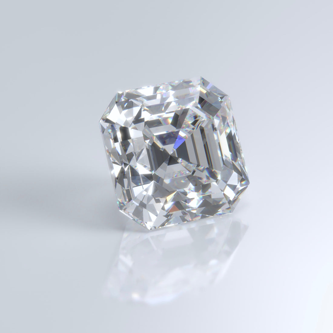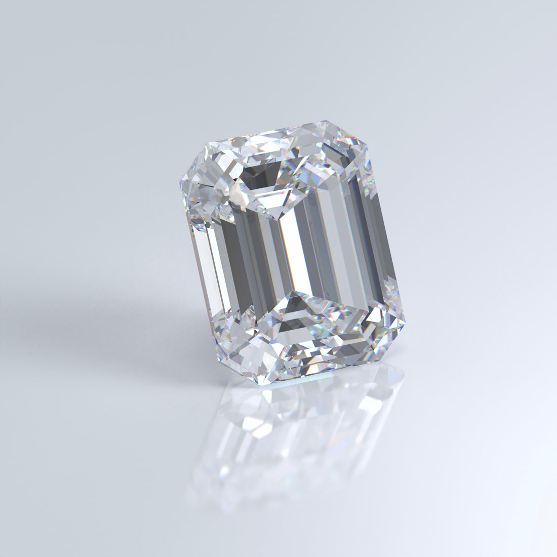 While similar to an emerald cut, its 58 facets are larger & wide-set.