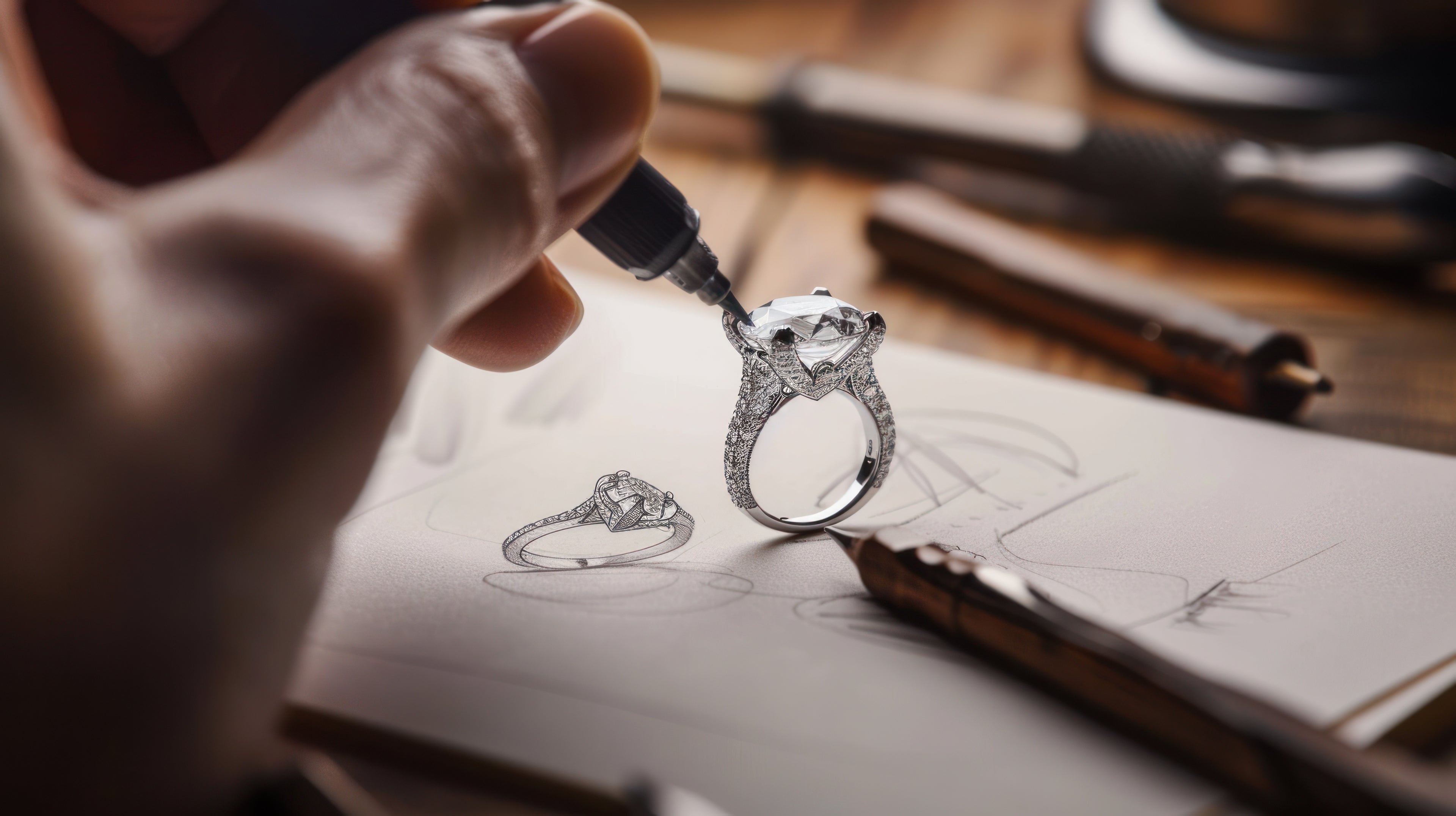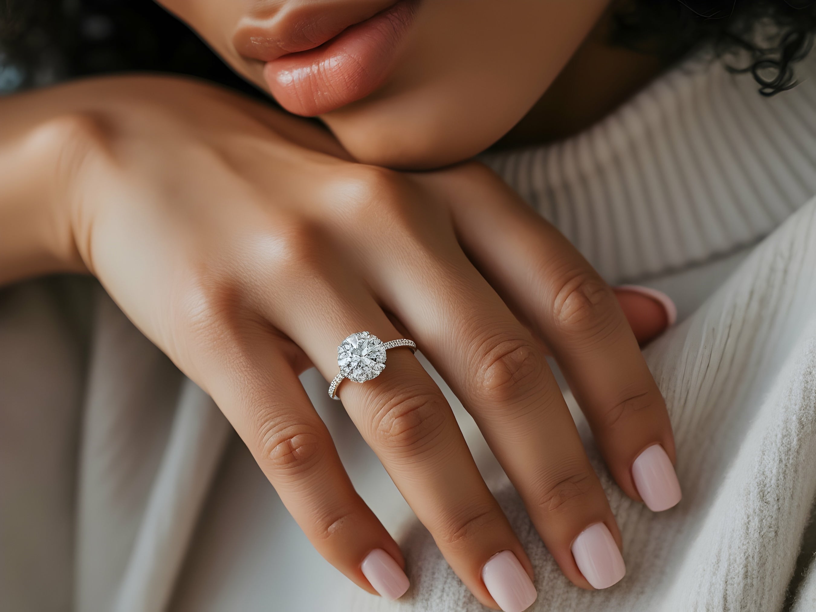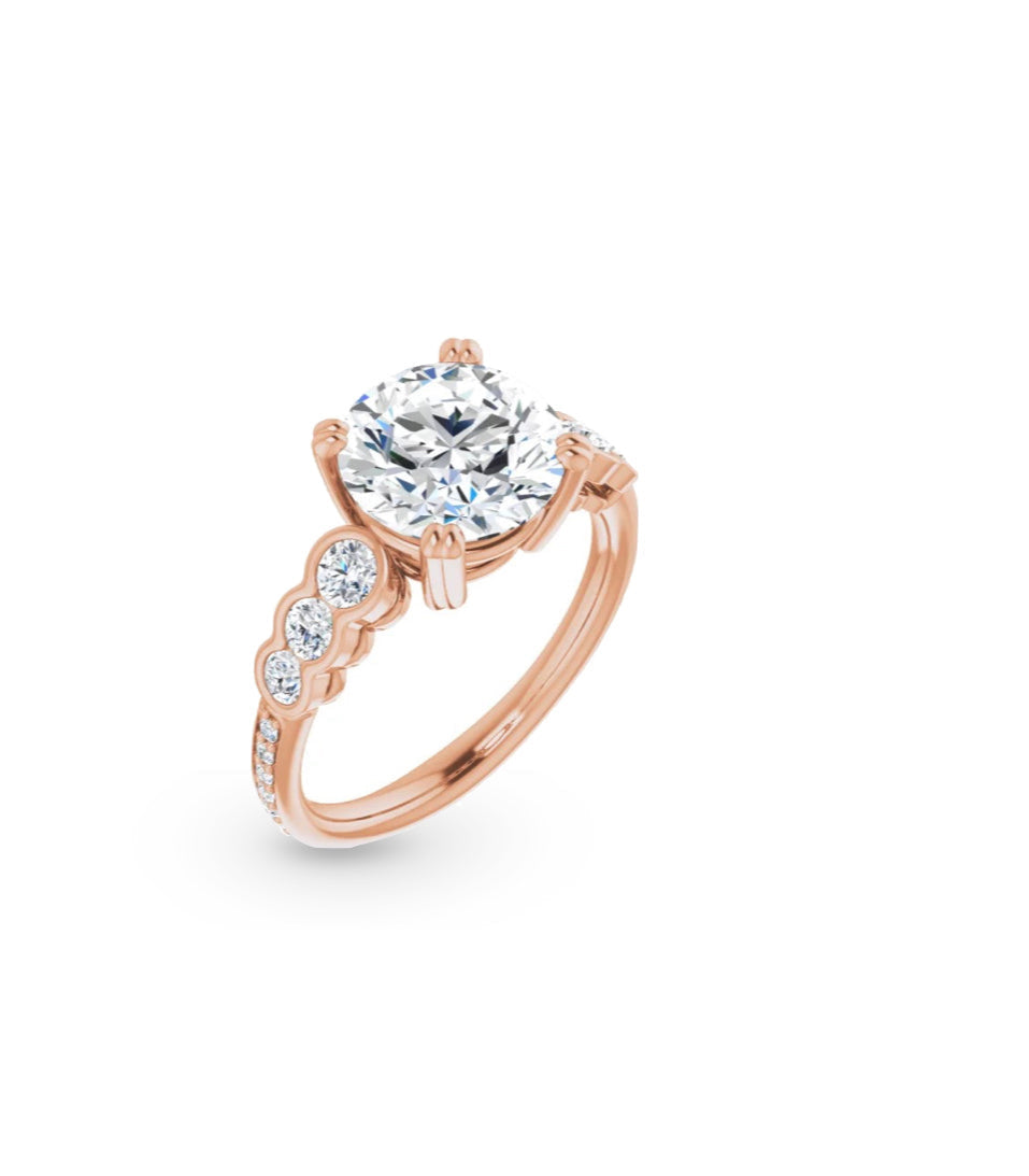Diamond accents embellish the ring's band itself, using various methods such as bezel-set, prong-set, channel-set, or pave.