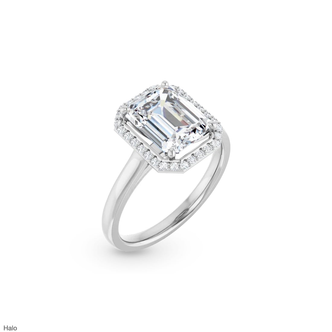 Complementing a variety of stone shapes, it surrounds the center stone with a “halo” of diamonds and is great for boosting the appearance of a small diamond by increasing the ring’s overall sparkle. Halos are often paired with pavé wedding bands but clearly hold their own with a simple unadorned band.